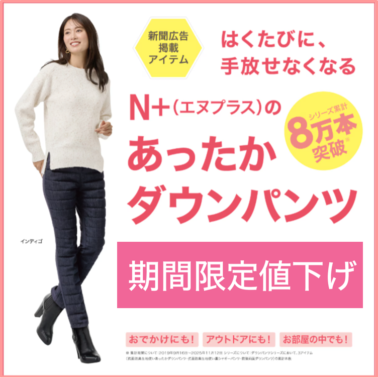 N+人気のダウンパンツシリーズ 500円引きキャンペ...