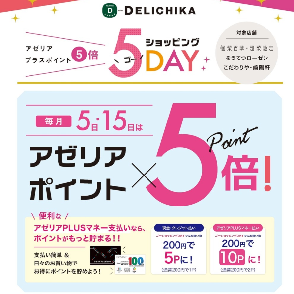 アゼリアPLUSカードポイント2倍!【4/24~4/26】