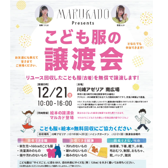 リユース回収したこども服(古着)を無償で譲渡しま...