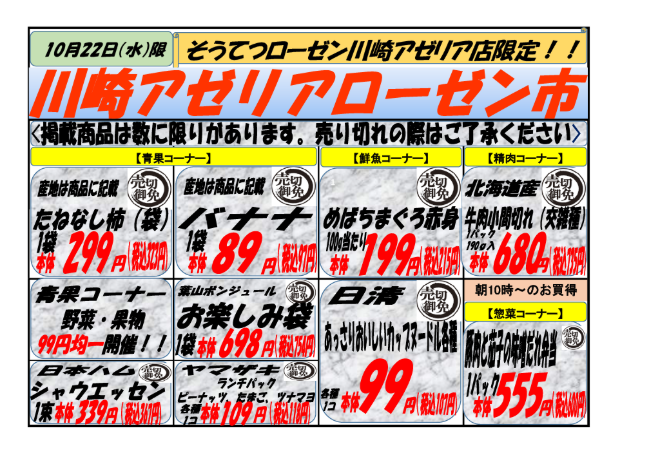 10/22(水)にて毎週水曜日恒例「そうてつローゼン川崎アゼリア店」限定、「川崎アゼリアローゼン市」開催!