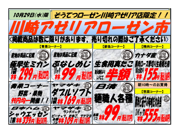 10/29(水)にて毎週水曜日恒例「そうてつローゼン川崎アゼリア店」限定、「川崎アゼリアローゼン市」開催!