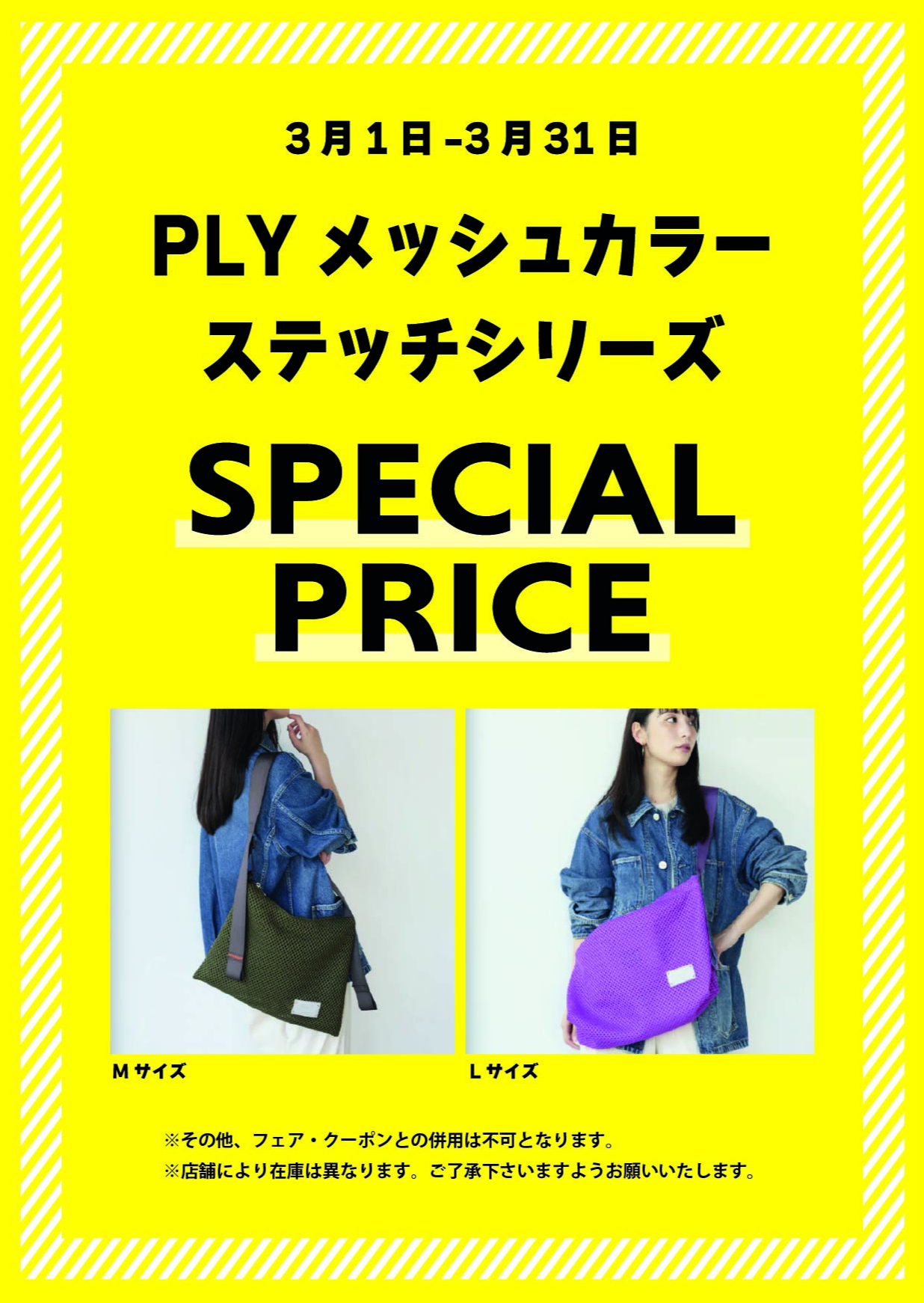 PLYメッシュカラーステッチシリーズバッグが