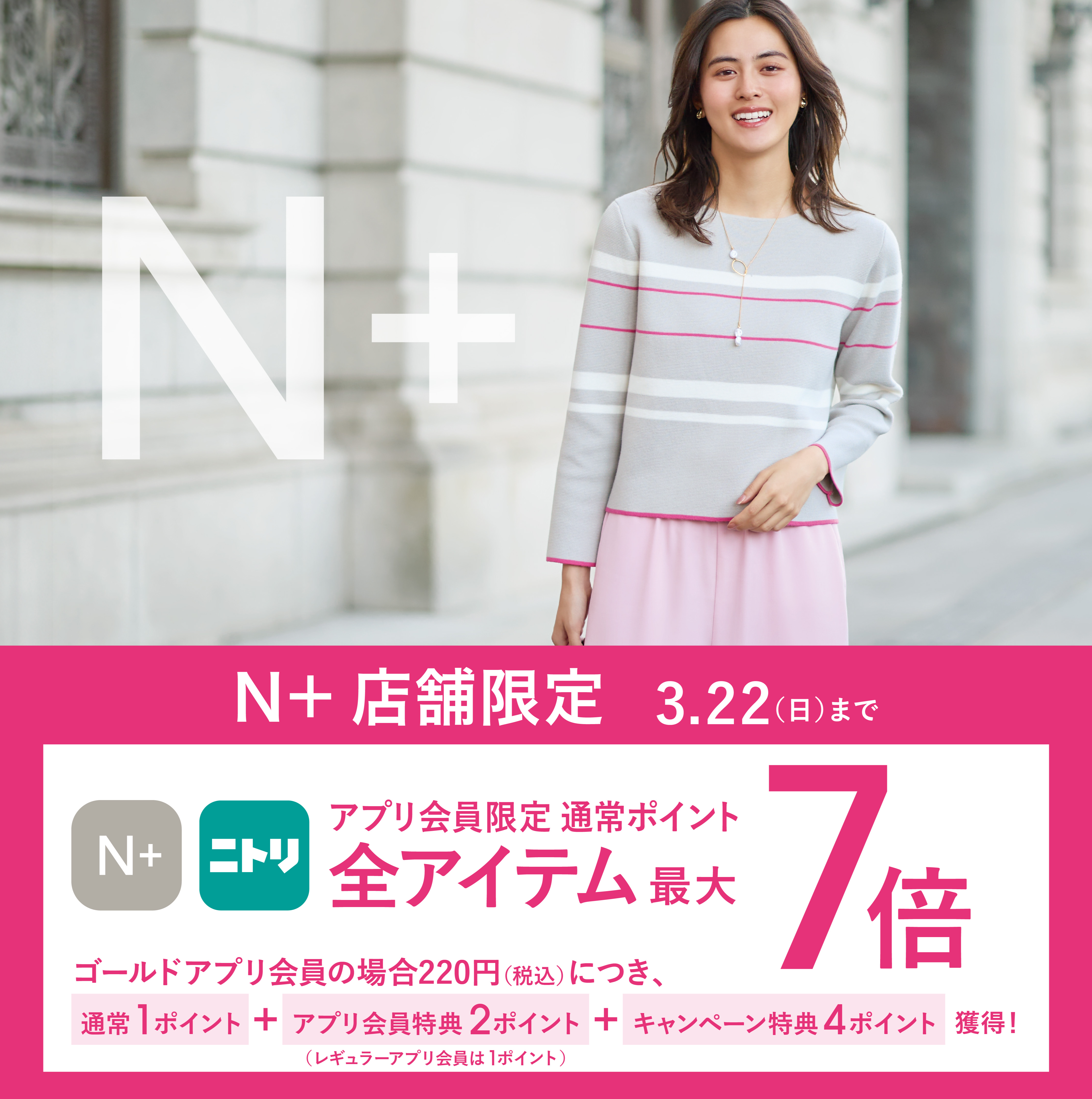ニトリグループ発のアパレルブランド N+(エヌプラス)です。