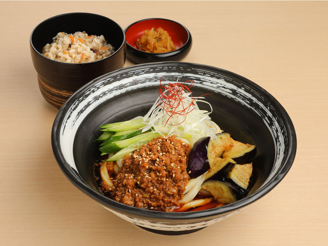 涼やか×こく旨 揚げ茄子と肉味噌のピリ辛冷やしうどん
