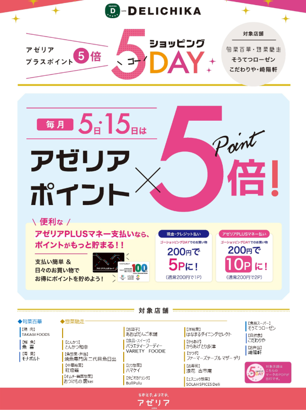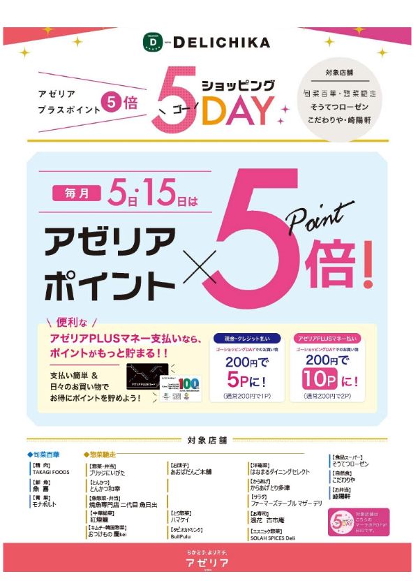 アゼリアPLUSカードポイント5倍を実施いたします!