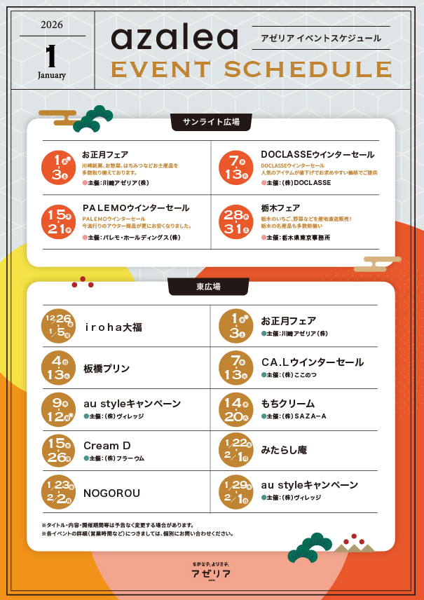 1月のアゼリアEventスケジュールはこちら!!