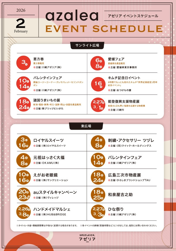 2月のアゼリアEventスケジュールはこちら!!