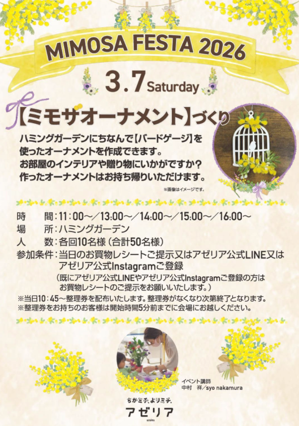 ~3/7(土)【ミモザオーナメント】づくり~
